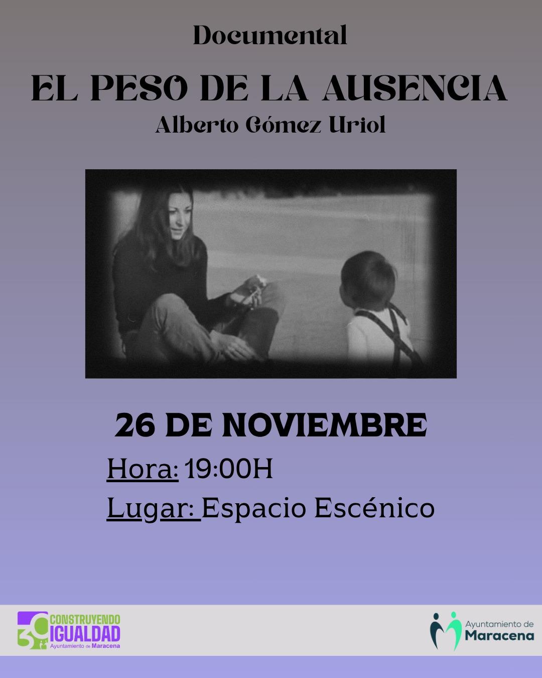 El peso de la ausencia es una película documental autobiográfica en la que su director, Alberto Gómez Uriol, recupera la memoria de su hermana Mª del Carmen, asesinada por su marido en 1973 y narra, a través del manuscrito que dejó, su admirable lucha por ser una mujer libre y su enorme valentía para enfrentarse a quien quiso someterla.