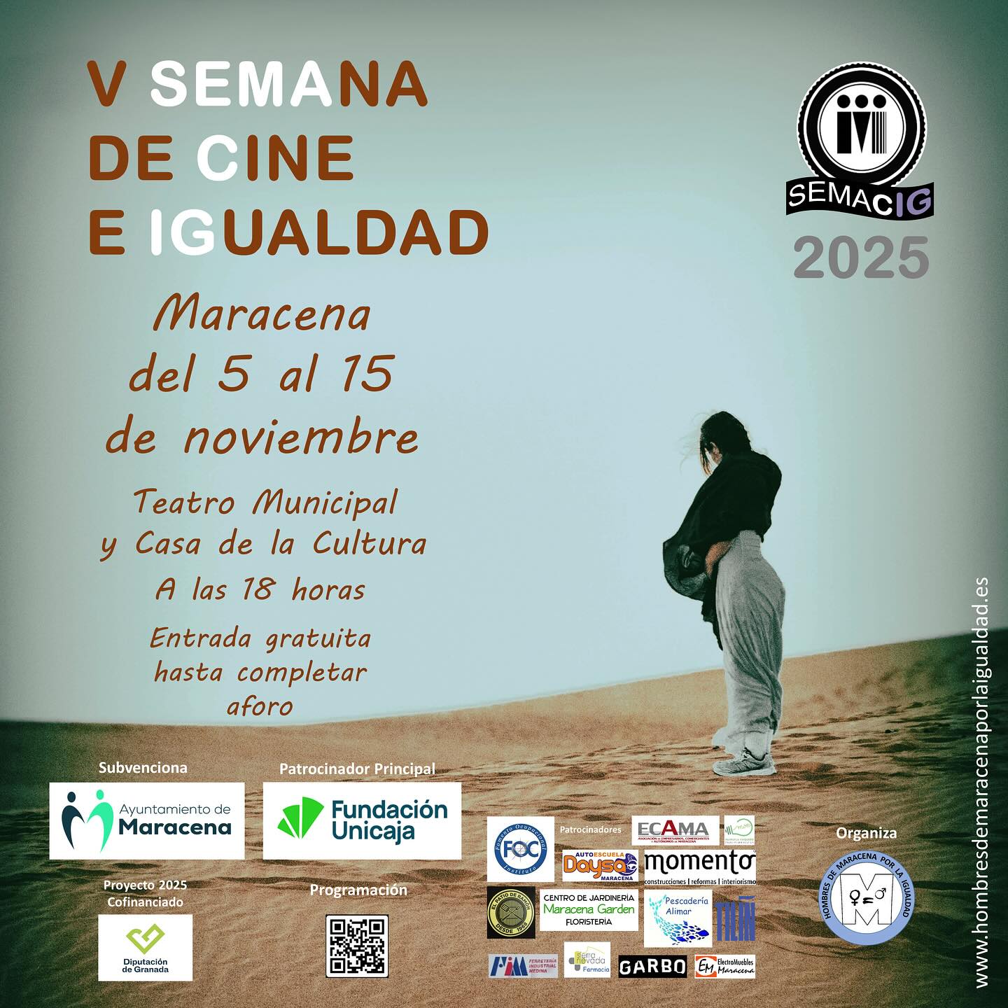 Del 𝟱 𝗮𝗹 𝟭𝟱 𝗱𝗲 𝗻𝗼𝘃𝗶𝗲𝗺𝗯𝗿𝗲, Maracena se convierte en el gran escenario del cine con mirada de género con la V Semana de Cine e Igualdad (SEMACIG), organizada por la Asociación Hombres de Maracena por la Igualdad.