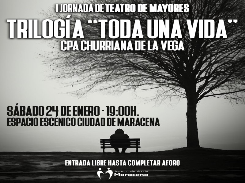 I JORNADAS DE TEATRO DE MAYORES DE MARACENA Trilogía ¨Toda una vida¨ por el grupo de teatro del CPA de Atarfe Entrada Libre hasta completar aforo Sábado 24 de Enero 19.00 Hs. Espacio Escénico de