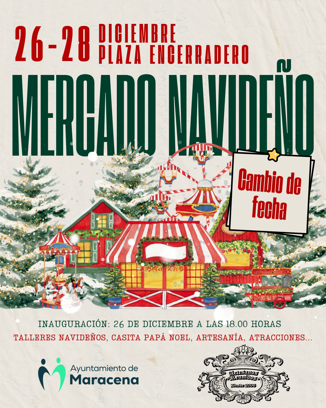 🗓️𝐂𝐀𝐌𝐁𝐈𝐎 𝐃𝐄 𝐅𝐄𝐂𝐇𝐀𝐒🗓️ Del 26 al 28 de diciembre, la