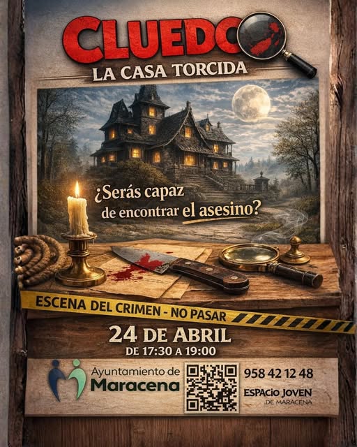 Cluedo: la casa torcida 24 de abril, de 17:30 a 19:00h Espacio joven de Maracena